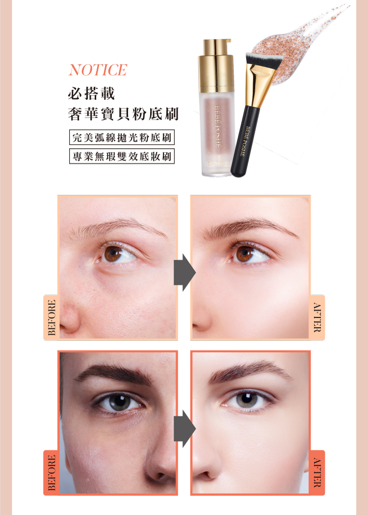 ※使用方式:需搭配「粉底刷」均勻上妝,成就完美水光妝感