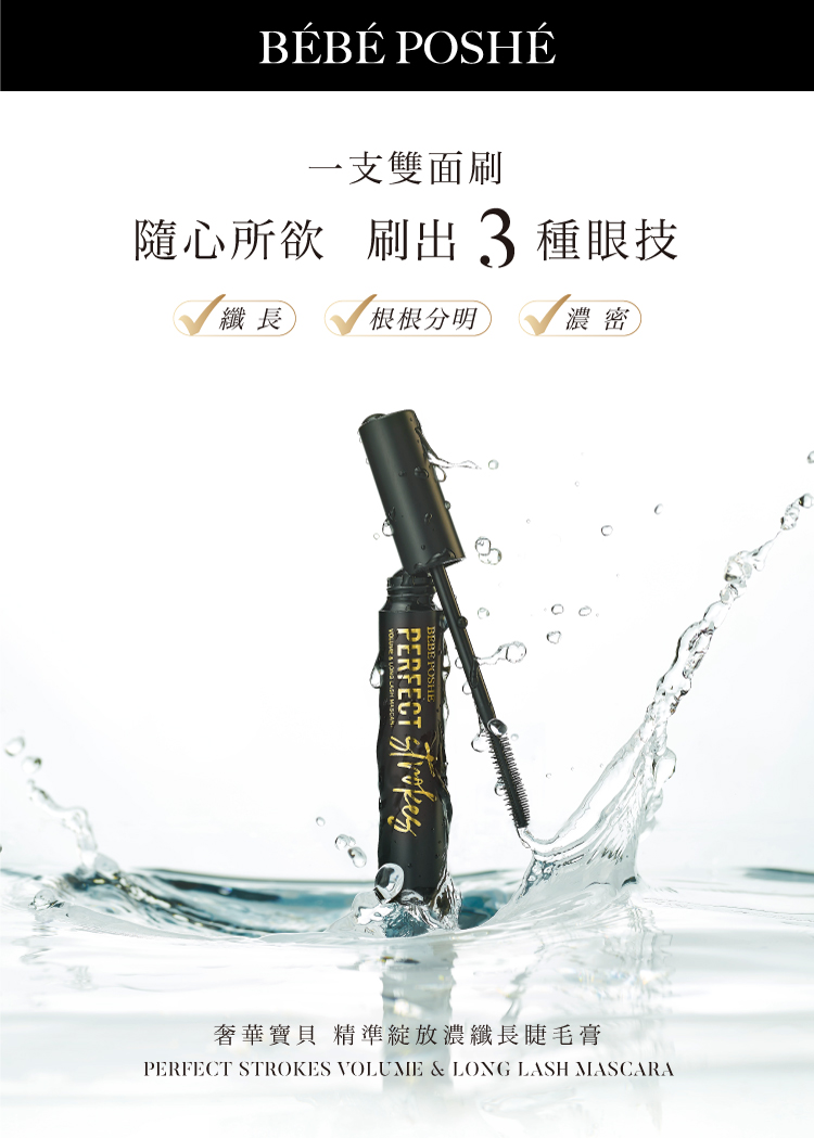 隨心所欲刷出纖長、濃密、捲翹美睫。可溫水即可輕鬆卸除。